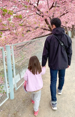 育休中、満開の桜の下を一人目の子どもと春散歩